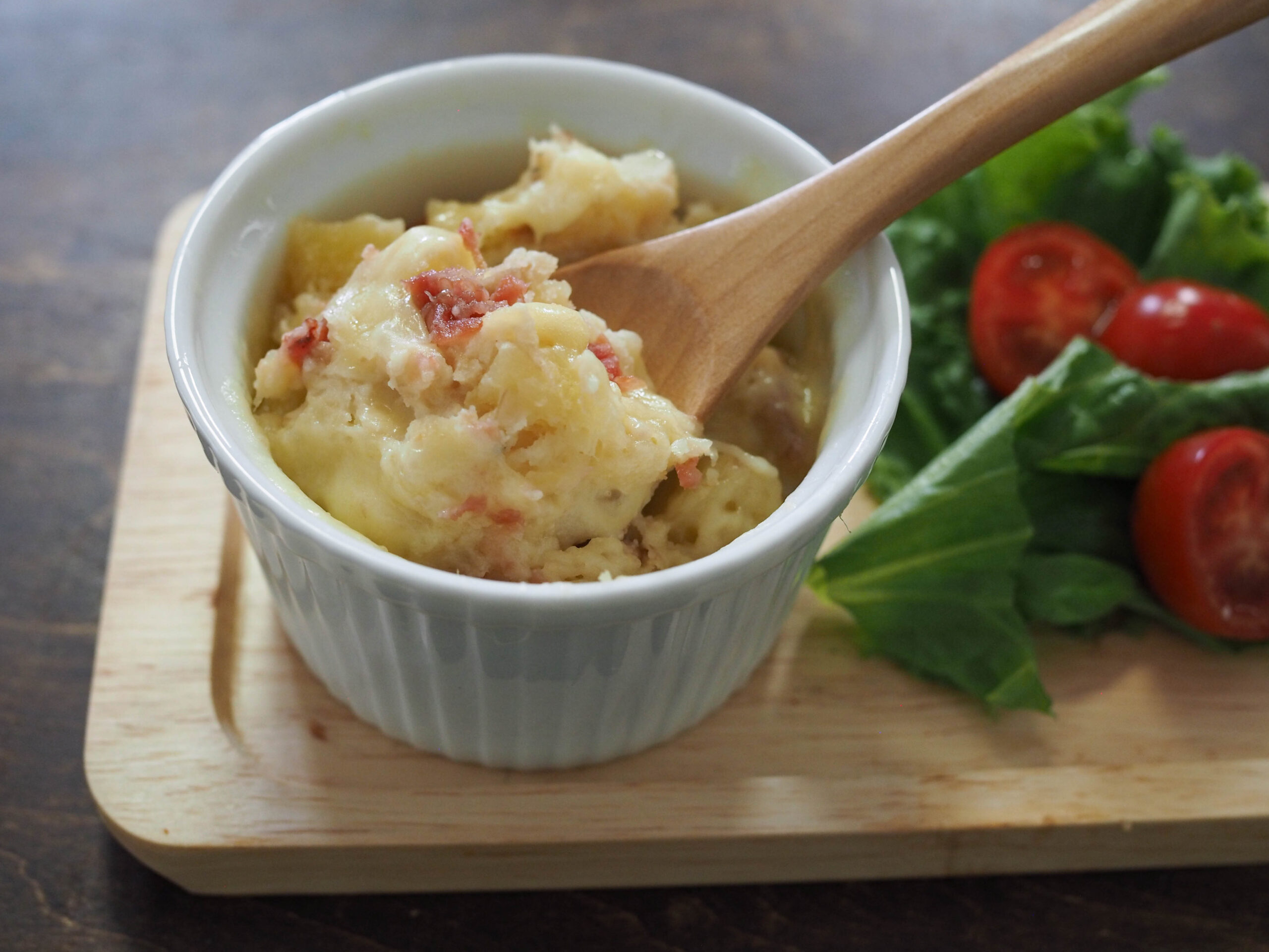 梅ポテトサラダにピザ用チーズをのせて、レンジ加熱するだけ