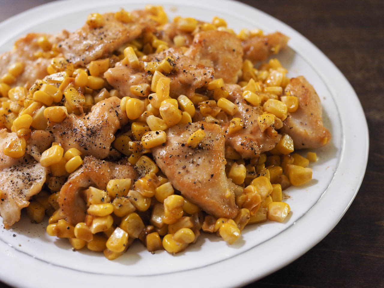 万能鶏むね肉とトウモロコシのバター醤油炒め