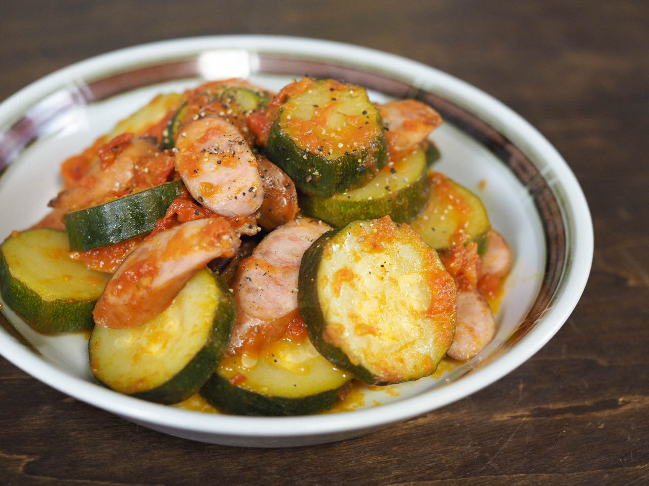 シンプルにズッキーニとソーセージだけをトマト煮にしてみると