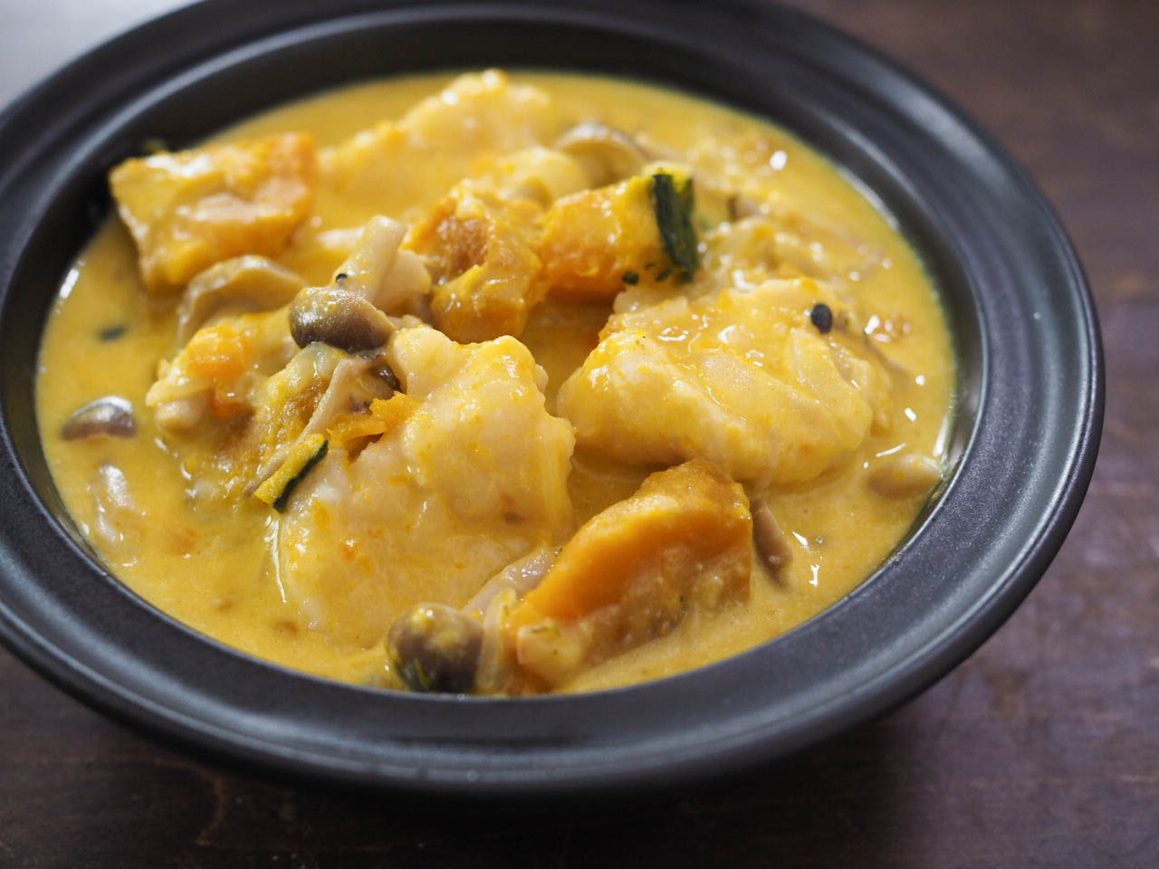 つぶしたかぼちゃで、いい感じのとろみがついて