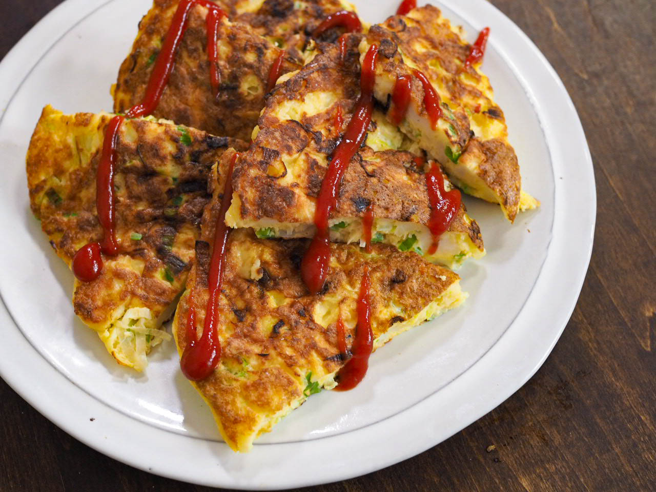 フライパンを熱してオリーブオイルを入れ、3を入れて全体に広げ、ふたをして蒸し焼きにする。