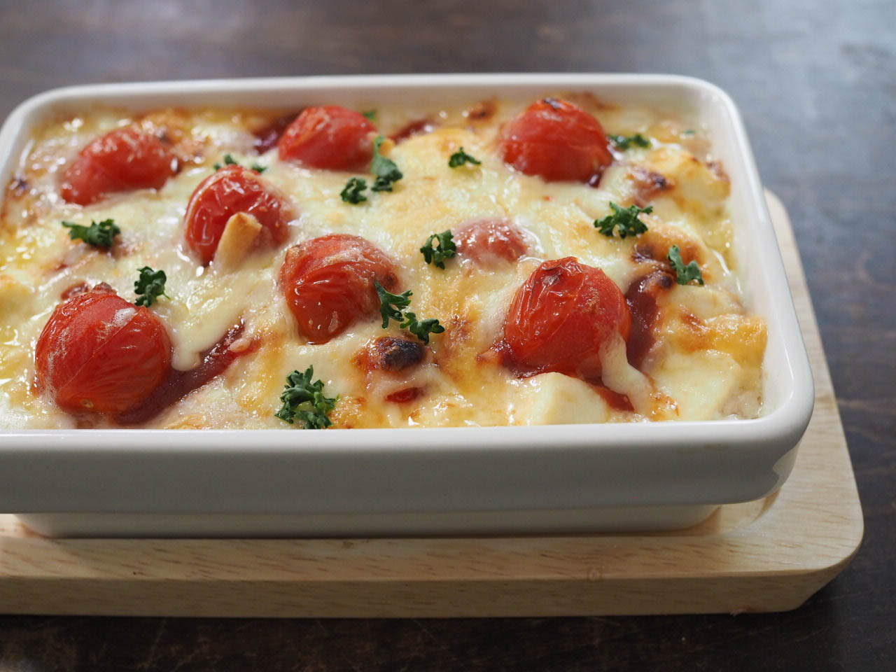 高野豆腐のグラタンに、何か野菜をプラスするのもありです。