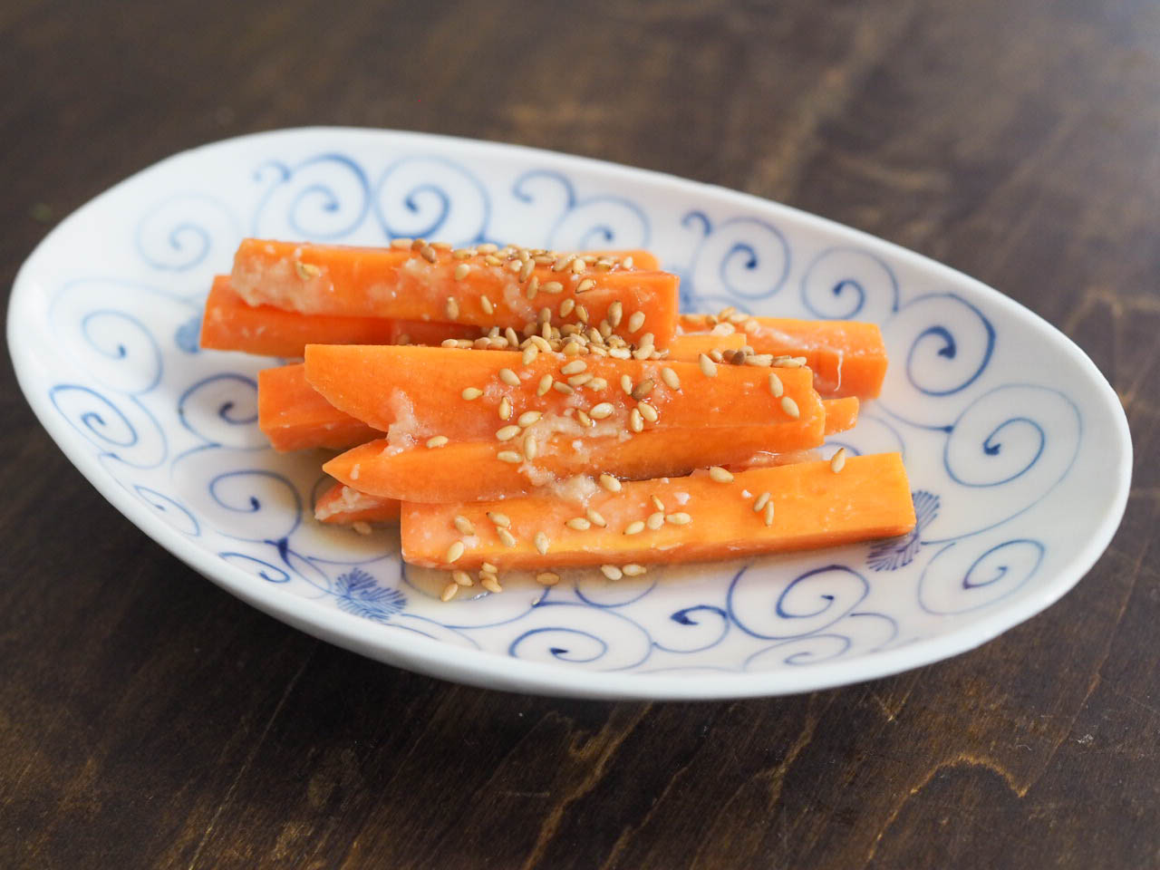 にんじんの味噌漬けにごま油と炒りごまをかけるだけ