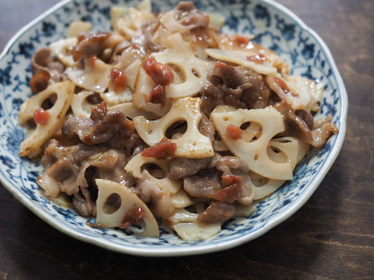 梅干の酸味が、レンコンの甘みを引き立ててくれる