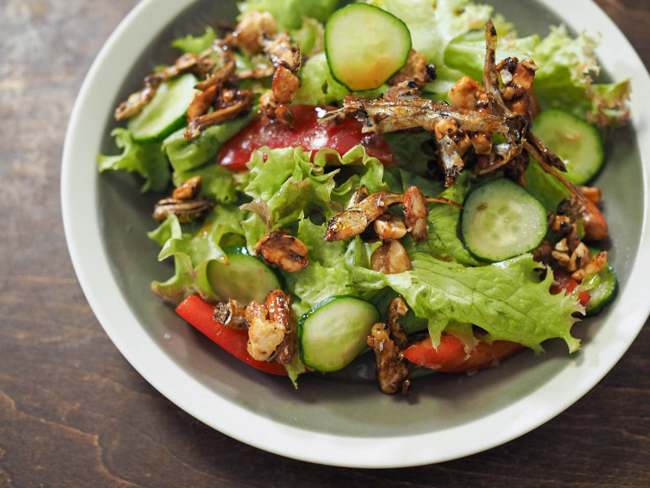 小魚&ナッツをサラダにパラリ♪
