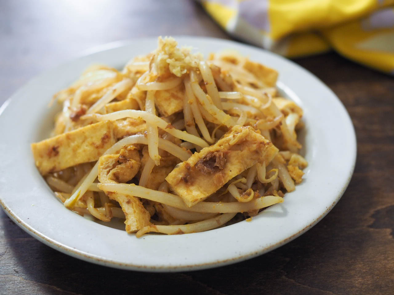 • ふたを開け、カレー粉を加えて一混ぜし、火を止めてかつお節を混ぜる。お好みでしょうがをプラスする。