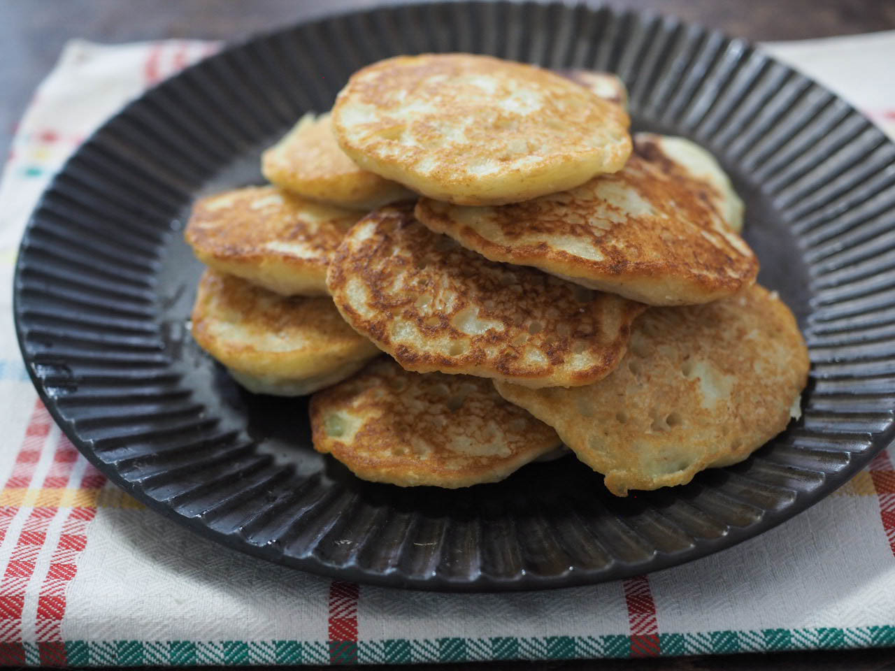 • フライパンを熱して、生地を流し、ふたをして2分蒸し焼きにしたらひっくり返し、反対の面も焼く。