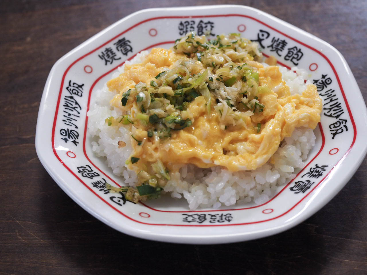 • Bを混ぜ、熱してごま油を入れてフライパンに流し入れて大きく混ぜ、半熟になったところでご飯にのせる。(ご飯の下には、お好みでかつお節を引いておく)