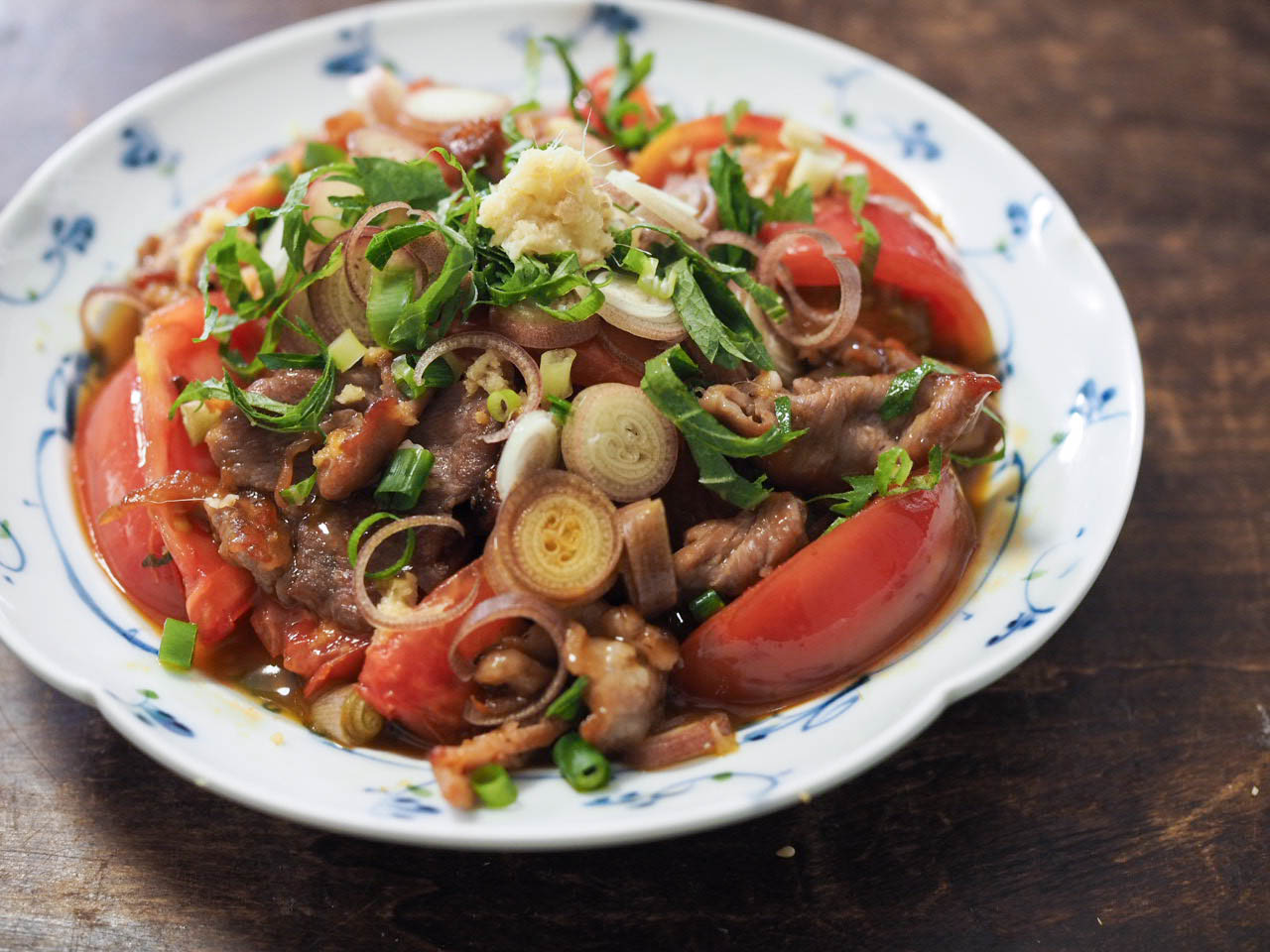 トマトと豚肉の生姜炒め薬味のせ