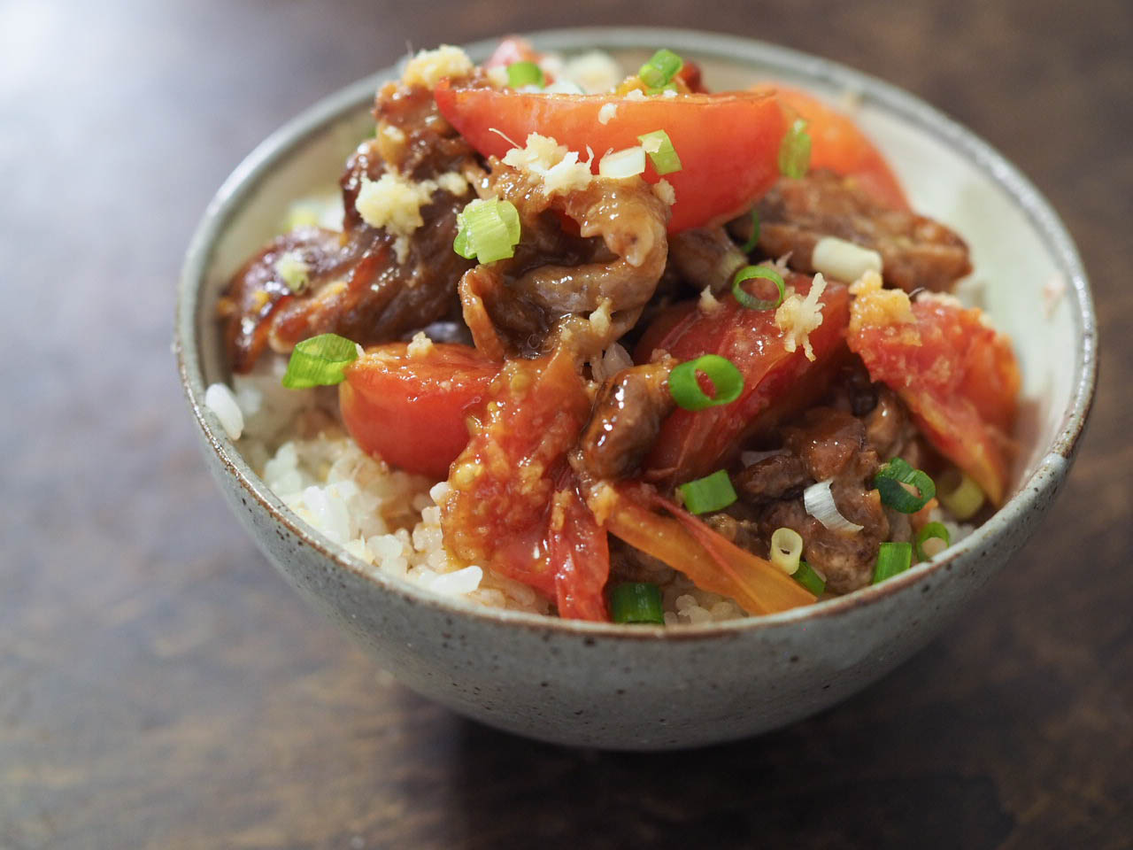 トマトと豚肉の生姜炒め丼