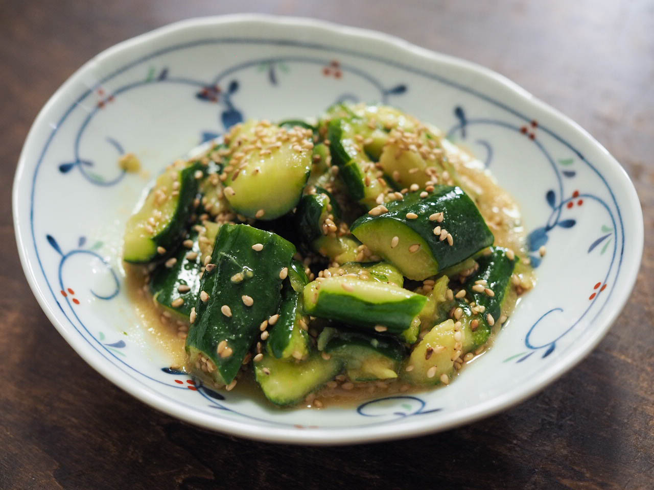 • キュウリをポリ袋に入れて麺棒で叩き、塩を入れてもんだら5分ほど置く。