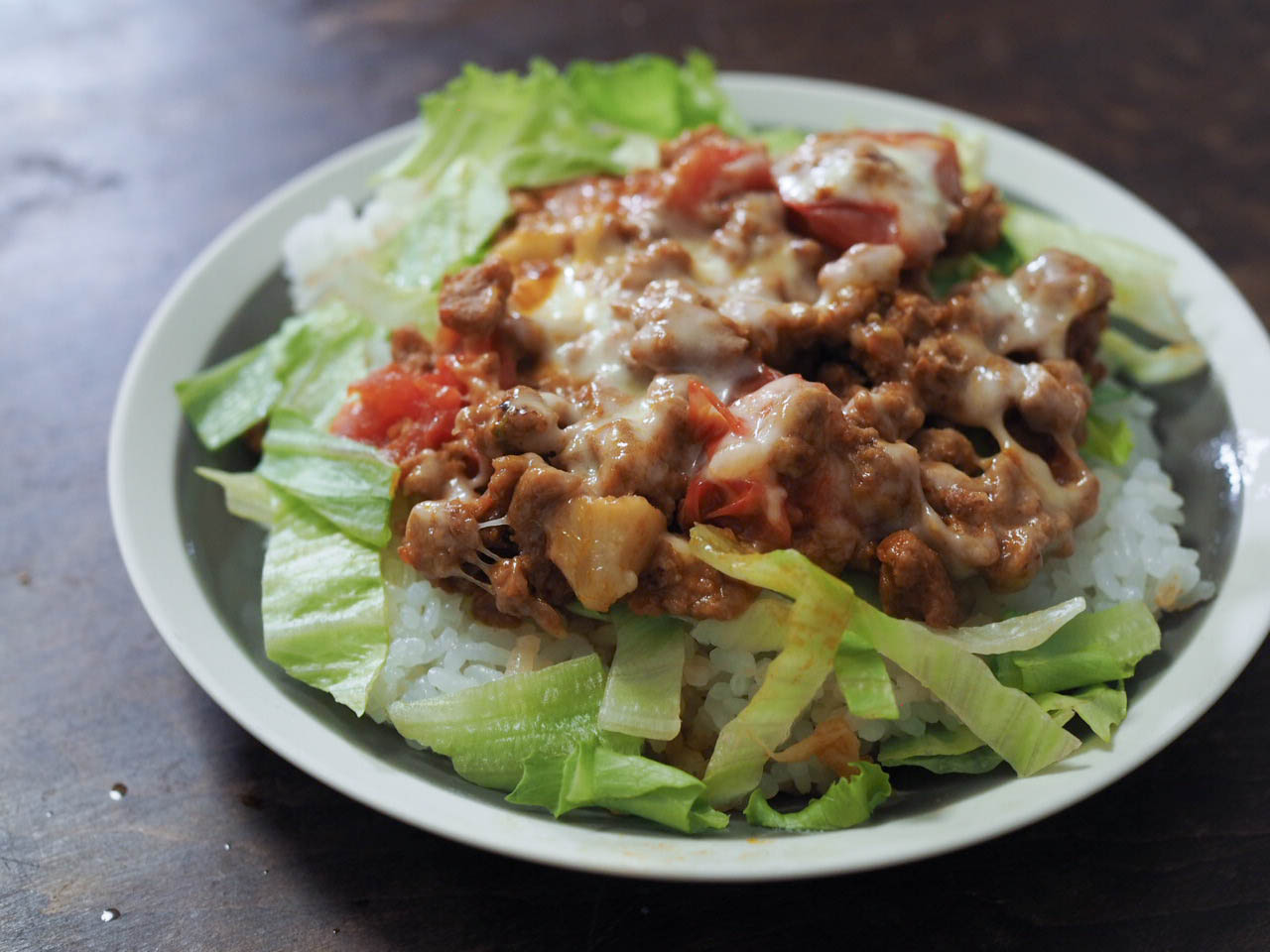 タコライスって、最後のトッピングにチーズが乗せることが多いんですね。