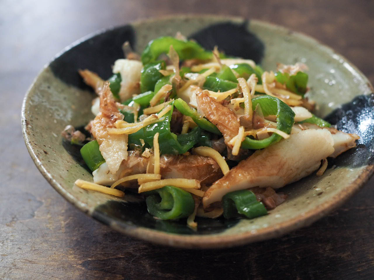 • フライパンを熱してごま油を入れ、ピーマンを入れたらすぐに塩(適量)を入れ、さっと炒める。