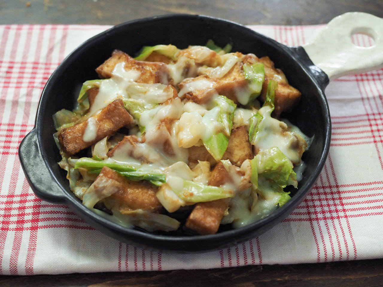 厚揚げとキャベツの味噌炒めに、チーズをプラス!!