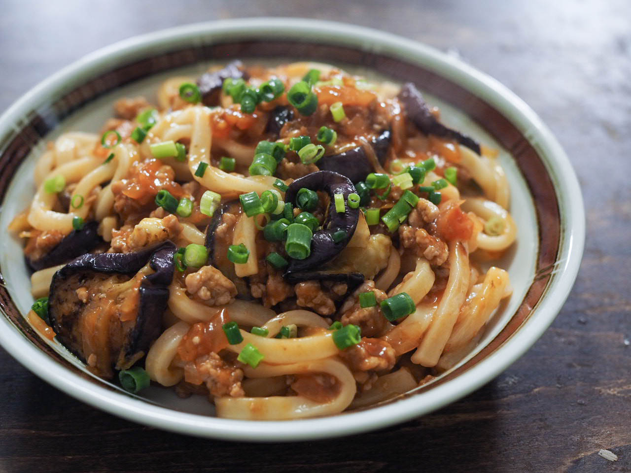 なすのミートソースうどん