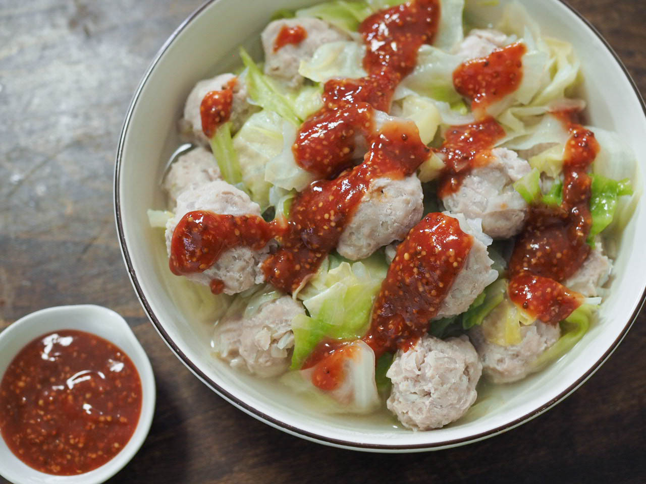 キャベツと肉団子のやわらか煮ケチャマスタードソース