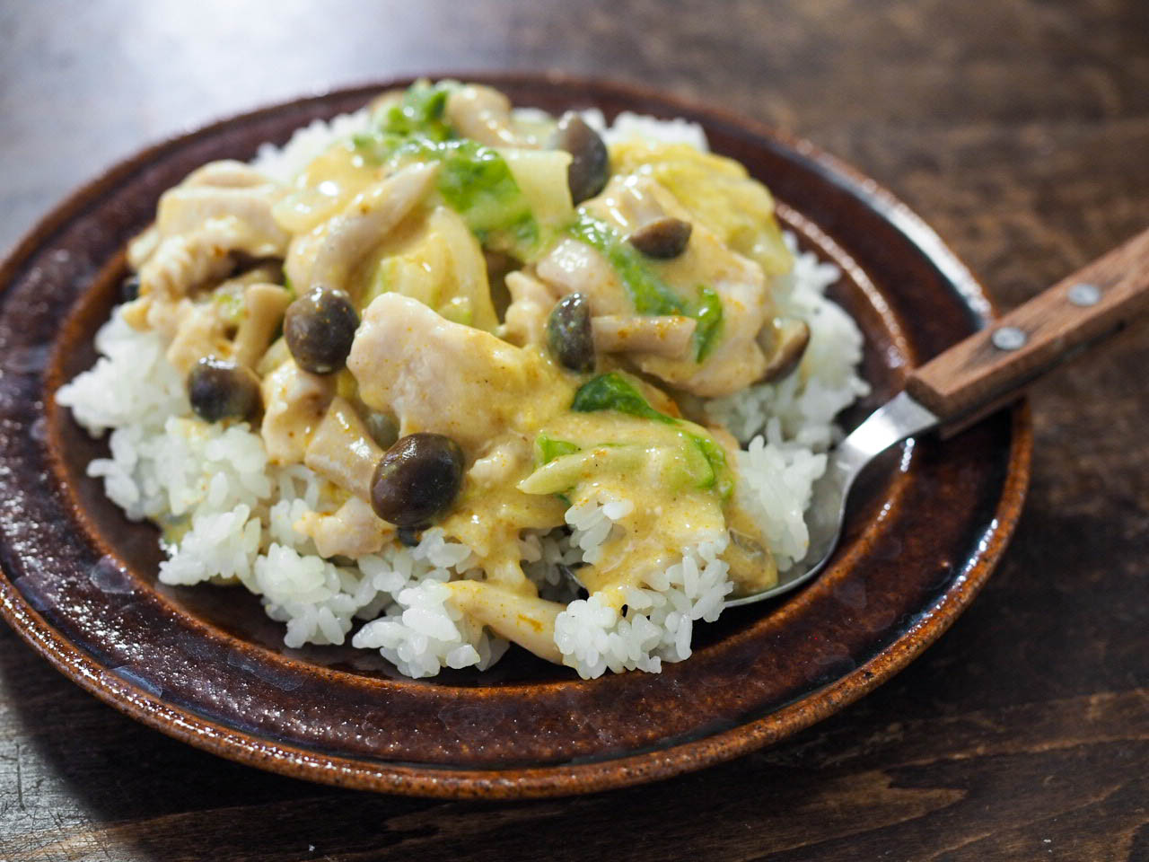 鶏と白菜のミルク煮に、カレー粉をプラス。