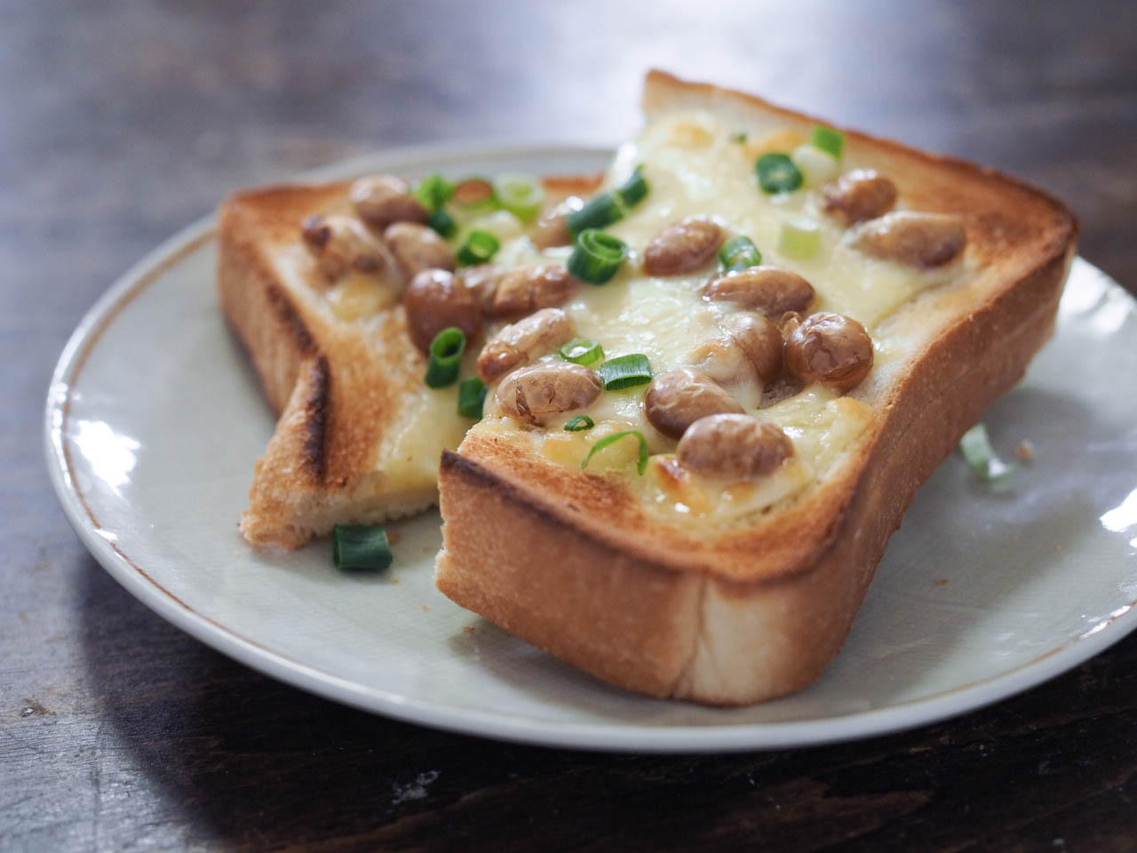 • 食パンにマヨネーズ、又はケチャップをお好み塗り、炒り豆、チーズ、炒り豆の順に乗せて、オーブントースター、または魚焼きグリルで焼く。