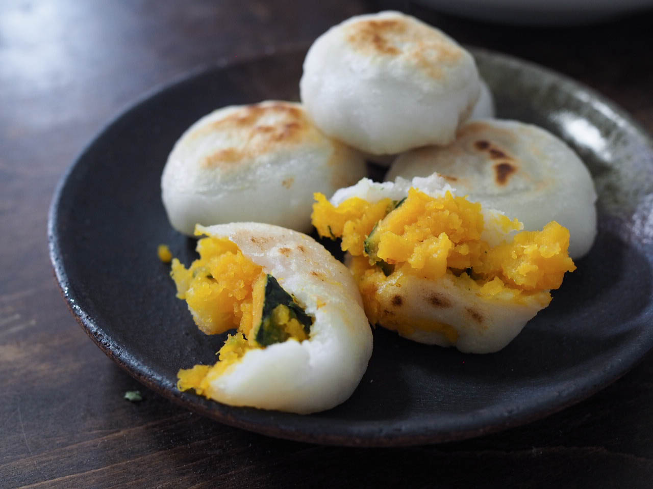 • 万能塩蒸しかぼちゃを作り、軽くつぶし、お好みで醤油みりんで軽く味をつけてから、生地で包む。