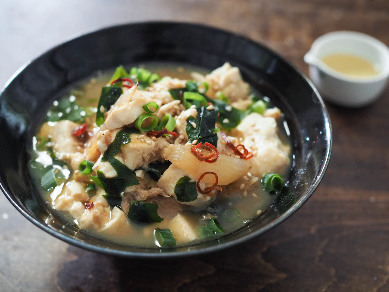 カットわかめを入れてサッと煮、醤油を入れて味を整える。