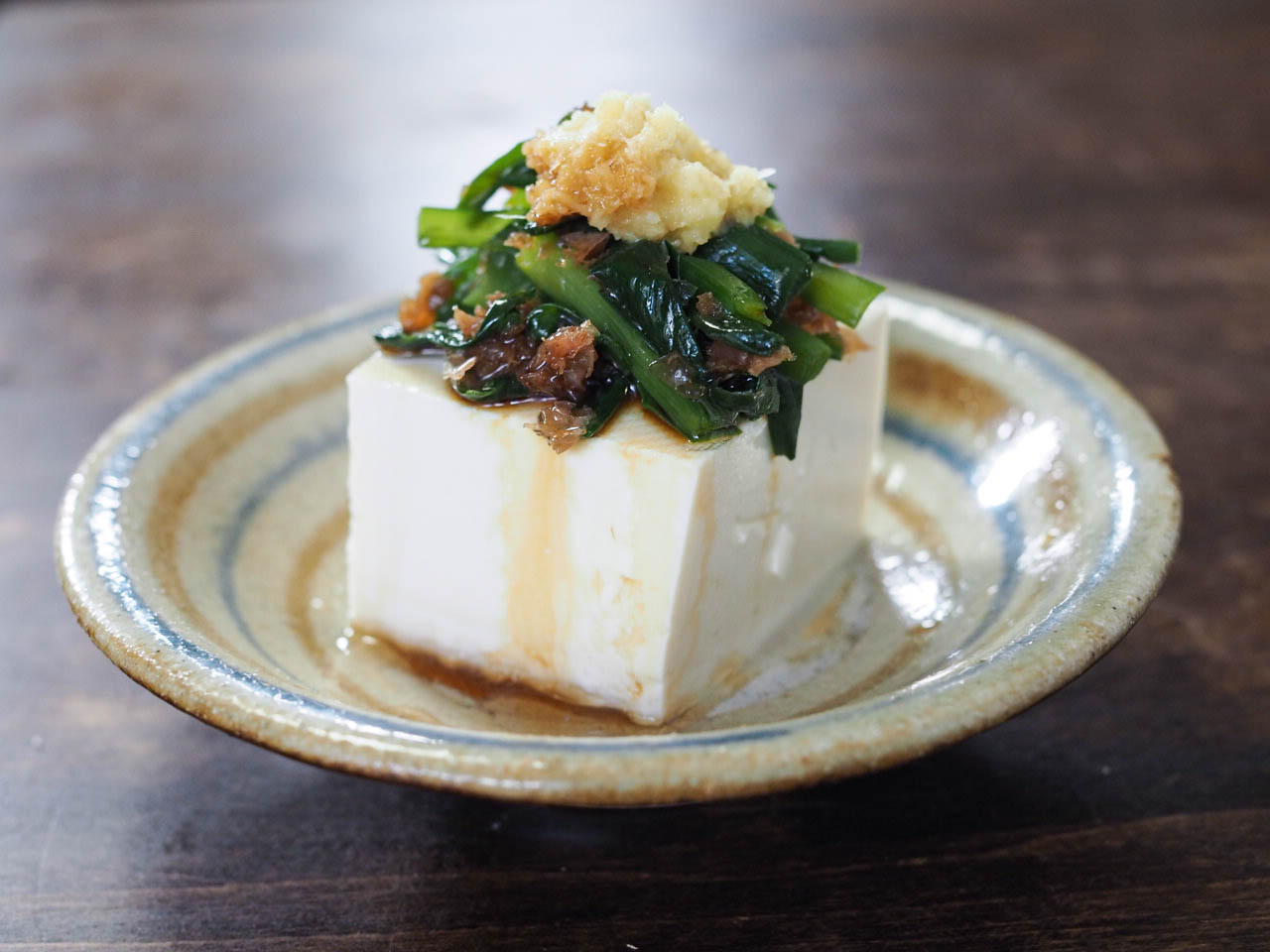 ニラのお浸しは、豆腐にのせるのもあり