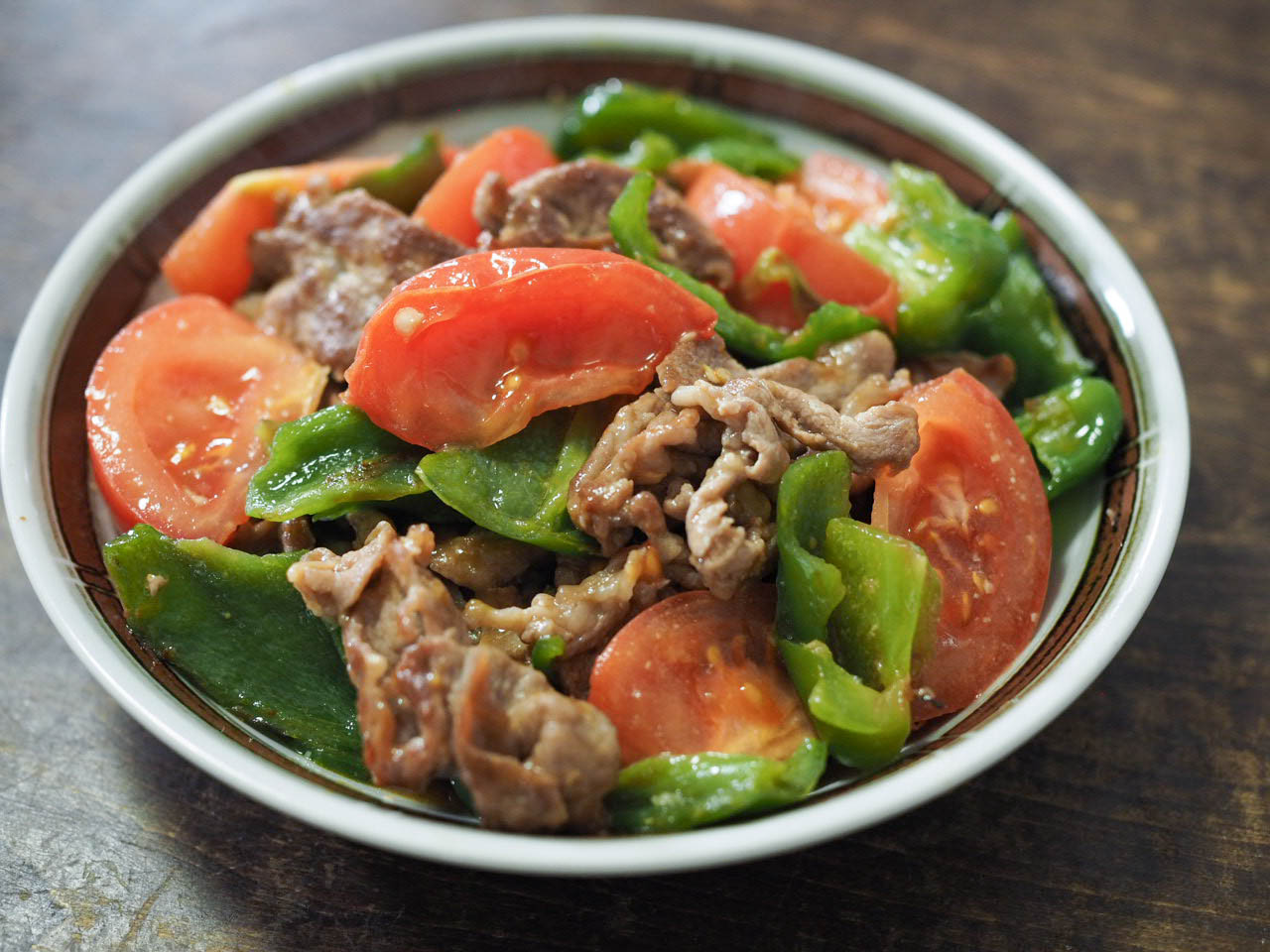 • フライパンを熱して、米油を入れ、豚肉を入れてさっと炒めたらピーマン、しょうが、にんにくを入れて炒め合わせ、水を入れてふたをする(3~4分)。