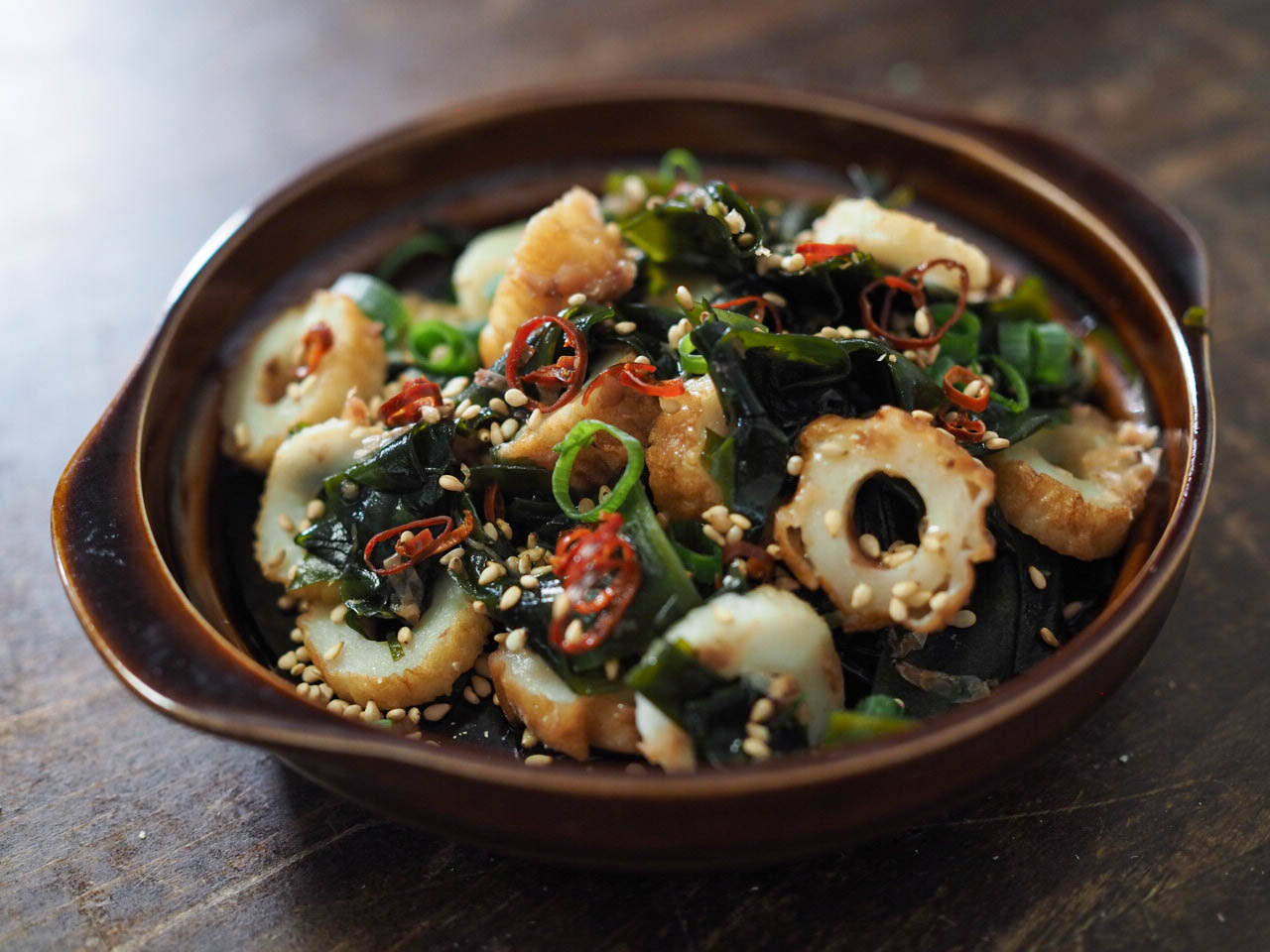 昨日紹介したわかめとちくわの生姜煮 めちゃめちゃシンプルに仕上げているので ここから、いろいろちょい足しができるのです。 例えば、生姜をニンニクに変え ごま油、ごま、お好みで唐辛子 これで、パンチの効いた中華風の一品に大変身!!