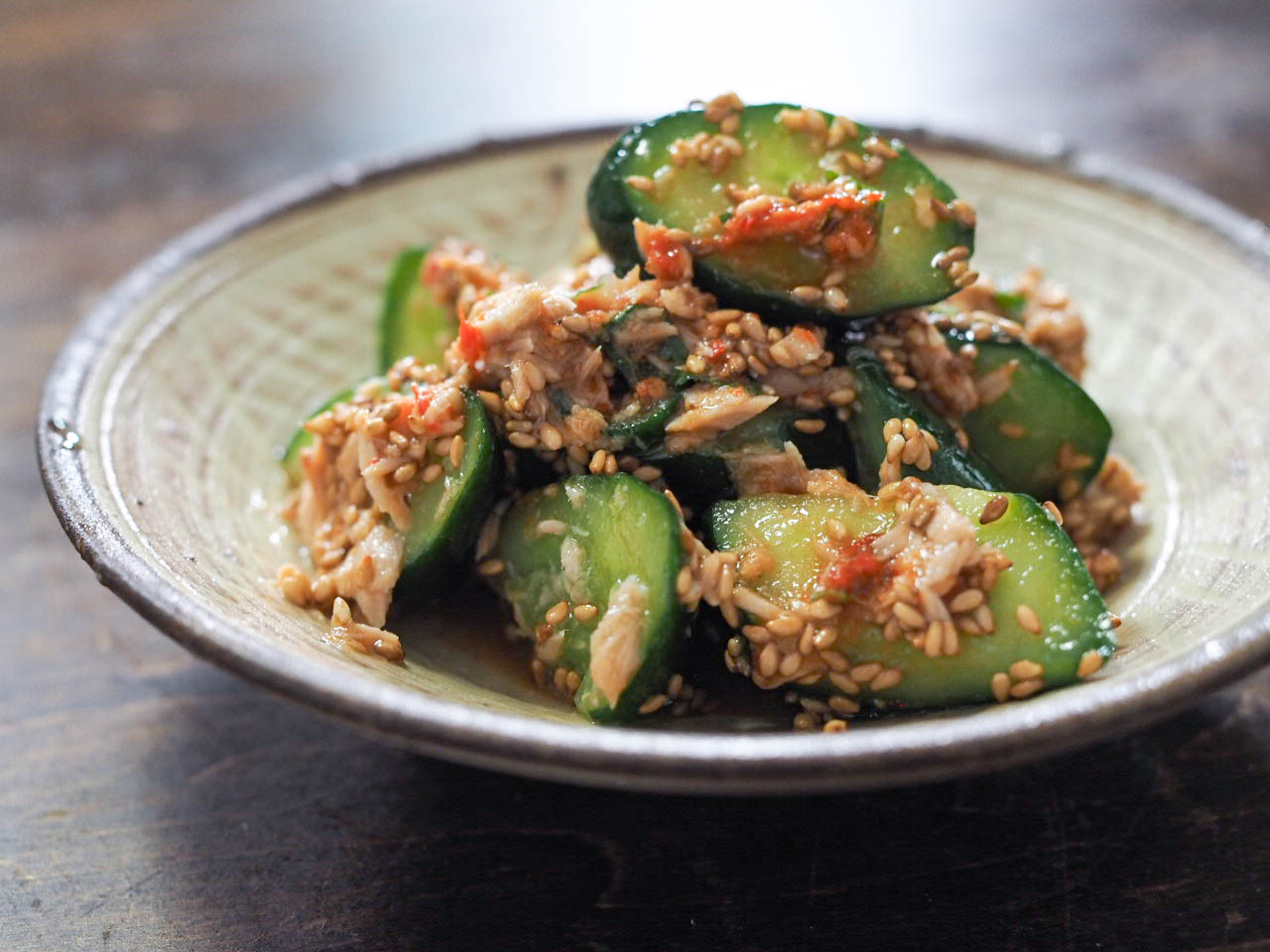 キュウリとツナのニンニクサラダをピリ辛にすれば