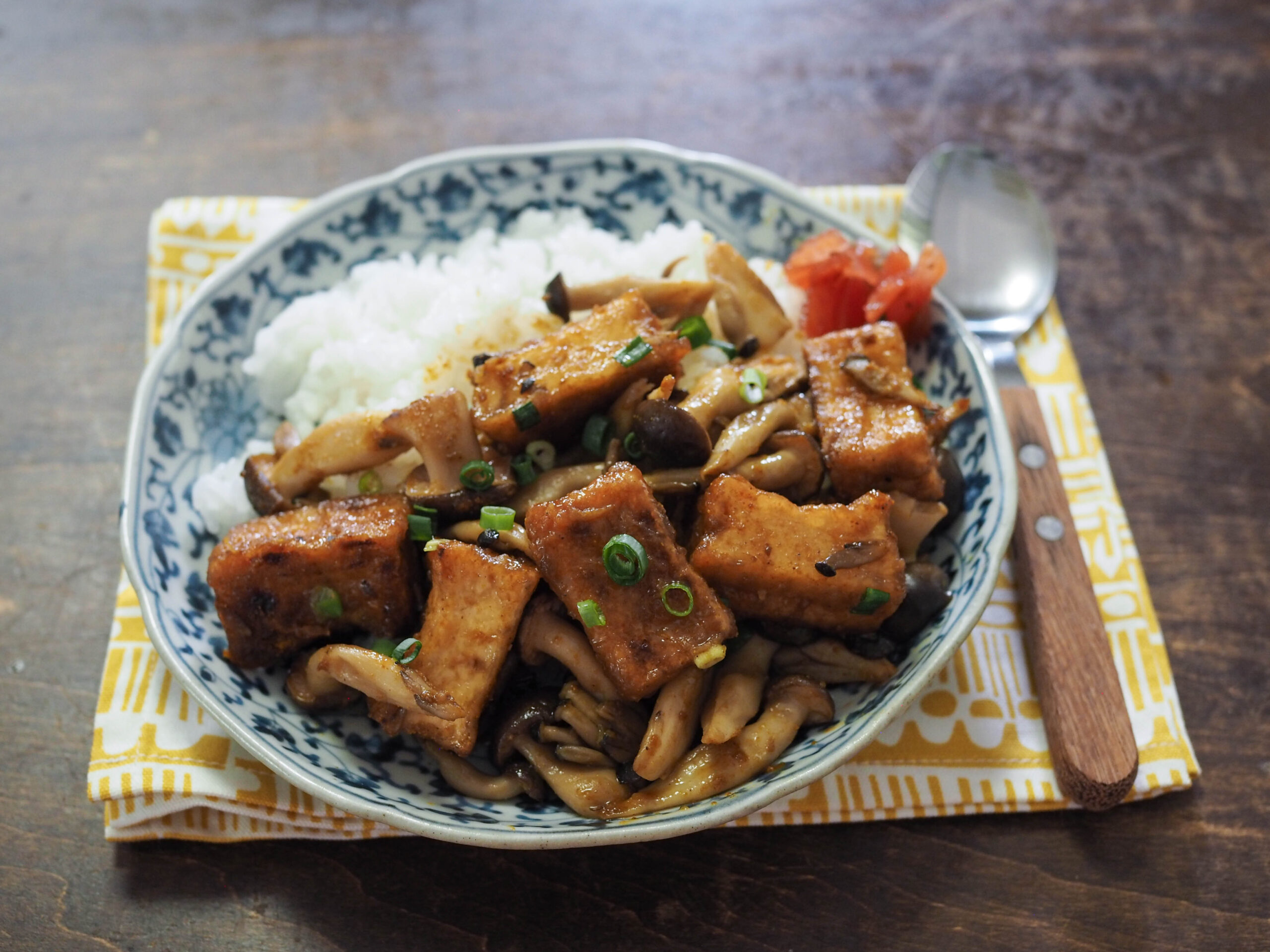 • フライパンを熱してこめ油を入れ、厚揚げを焼く。