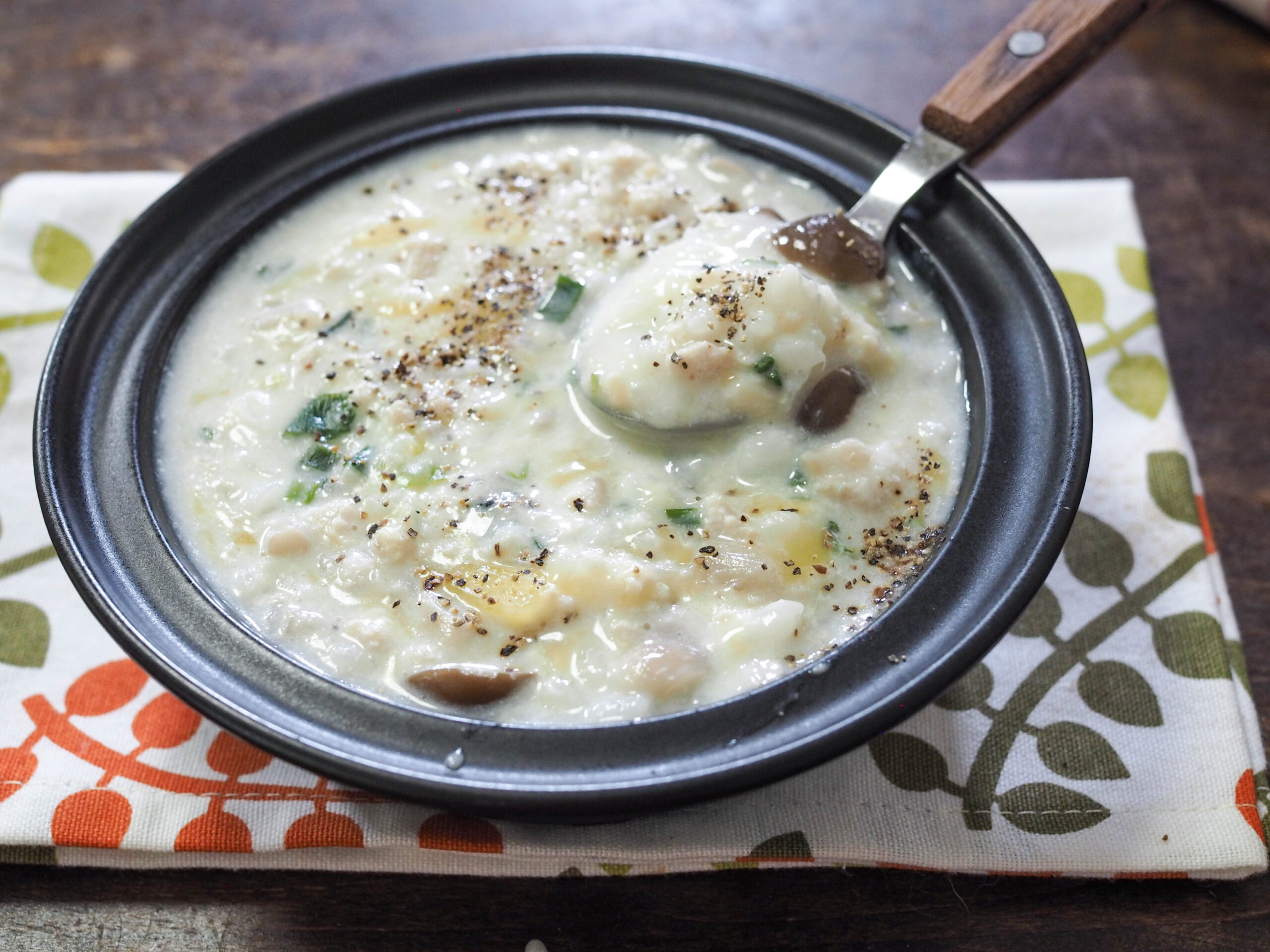 *きのこは、手に入りやすいもので大丈夫。動画では包丁で切っていますが、手でちぎってもOK。
