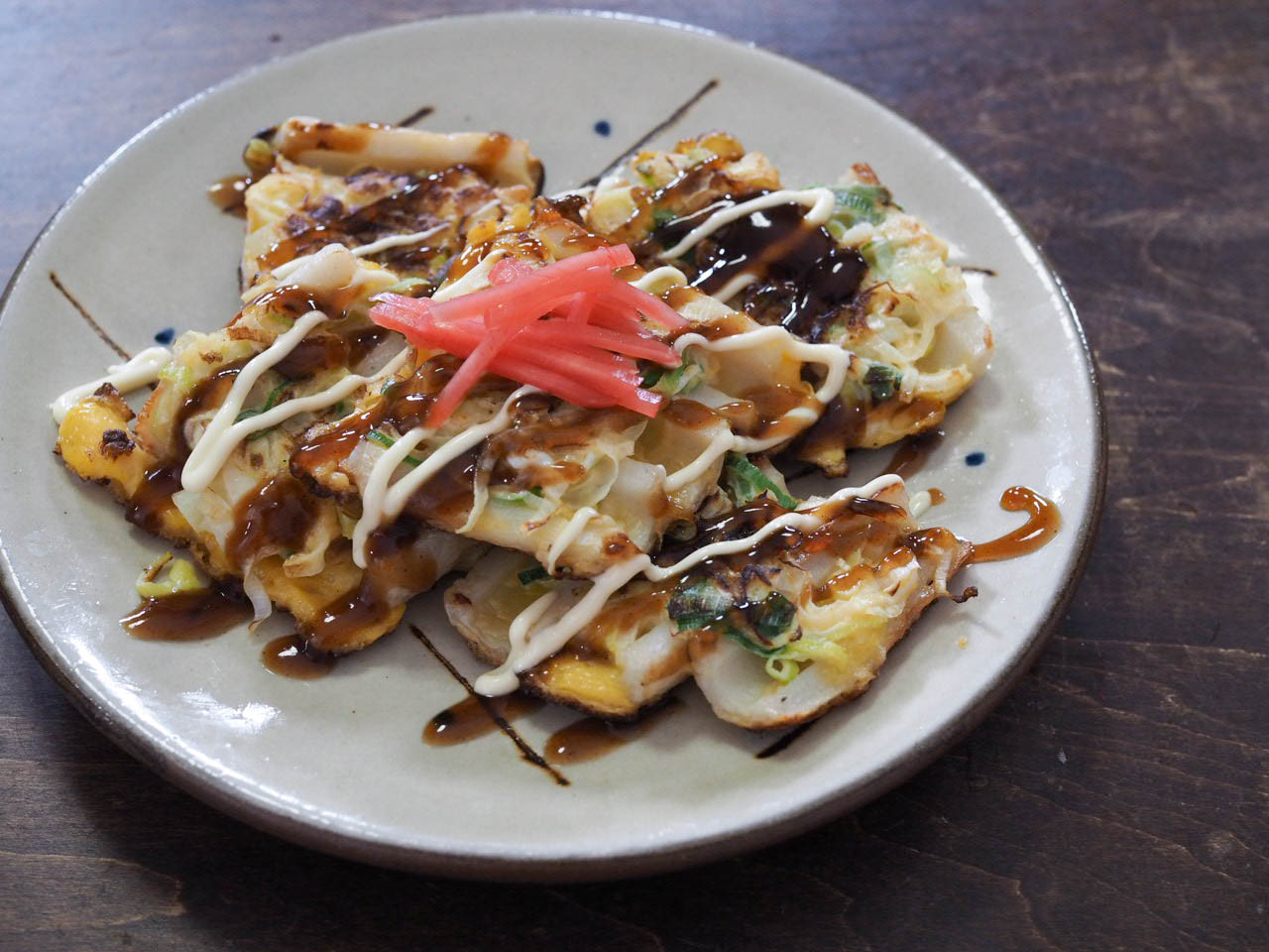 • お皿に出し、お好み焼きソースとマヨネーズをかけ、紅生姜をのせる