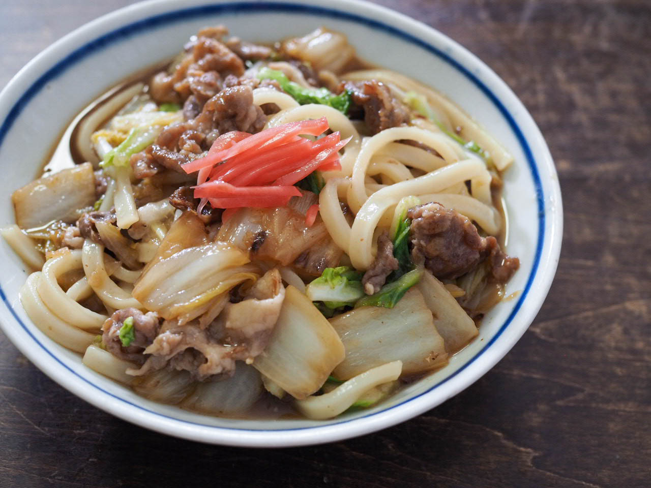 Bを入れて全体に混ぜ、とろみがついたら、うどんを入れてからめる。