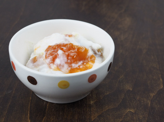 そうすると、干し柿がヨーグルトの水分でとろとろに柔らかくなるの。